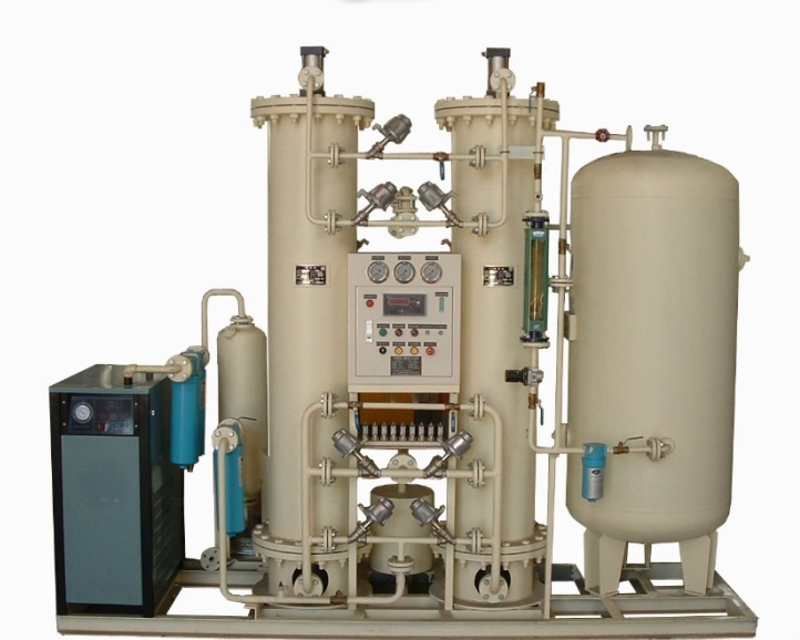 制氮機制作氮氣的過程只需要幾分鐘,便可以獲得高純度的氮氣。它是以空氣為原料,由空壓機對原料空氣進行壓縮與凈化,然后進入精密高效過濾器組,包括螺旋,凝聚,表面這三級過濾,從而除去大部分的液態(tài)水和油污,然后進入冷凍式干燥機,除去大量水分,經處理的空氣進入空氣儲罐,空氣儲罐可以降低氣流脈動,起到緩沖作用,從而減小系統(tǒng)壓力波動。接著,經過凈化干燥的壓縮空氣進入兩個吸附塔,一個是加壓吸附產氮,另一個是減壓脫附再生,通過PLC程序自動控制,從而使兩塔交替循環(huán)工作,即可連續(xù)生產高純度氮氣。氣體從吸附塔出來時的壓強很大,進入緩沖罐,緩沖罐可以緩解氣體壓力,防止爆罐。此時從緩沖罐出來的即為高純度氮氣。